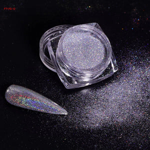 1 jar Laser Rainbow Nail Glitter Powder Ultra Fine Sparkly Holographic Chrome Nail Pigment Rubbing Dust Nail Gel Polish SuppliesPackage: 1pcs (about 0.2-0.3g)
